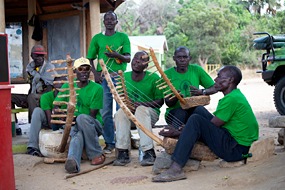 Tegen lunchtijd keren we terug naar de Paara Lodge. Bij de veerpont speelt een blinde jongen met zijn band.