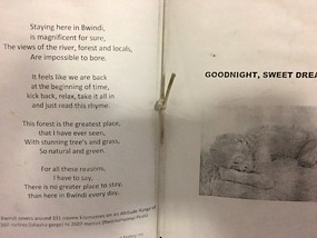 Een kruik (Oegandezen vinden het hier koud!) en een lief gedichtje! Wat lief is dat allemaal hier, de service is echt