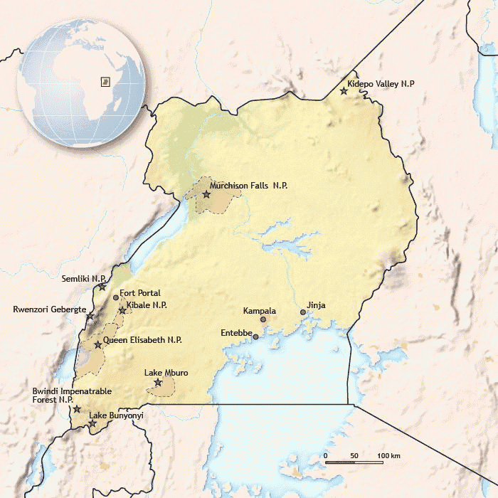 leven in totaal nog zo’n 700 à 800 gorilla’s, verdeeld over Congo, Rwanda en Oeganda. In Oeganda leven 400 gorilla’s.