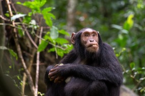 aan mensen. Er leven 800 chimpansees in Kibale Forest.