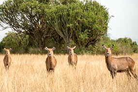 We zien veel waterbokken, die niet voor hun leven hoeven te vrezen, omdat ze oneetbaar zijn (ze stinken en smaken vies).