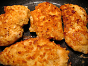 – Bak de stukken kip in de olie tot ze goudbruin zijn, ca. 5-7 minuten aan elke kant.