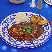 Mole Poblano de Guajolote is een 17de-eeuws Mexicaans gerecht, dat nog steeds wordt gemaakt bij huwelijks- en doopfeesten. De dikke saus is het lekkerst als ze een dag op voorhand wordt bereid.